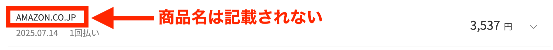 Amazonの決済でクレジットカードの利用明細に記載されるのは、「Amazon.co.jp」という会社名のみだからです。