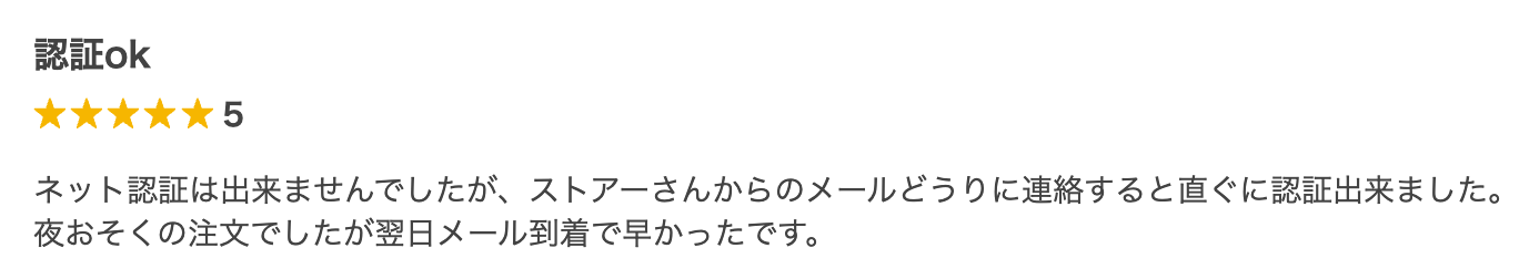 そこで販売業者にメールでこちらの情報を伝え、「イレギュラー」な形で認証を通してもらったということでしょう。